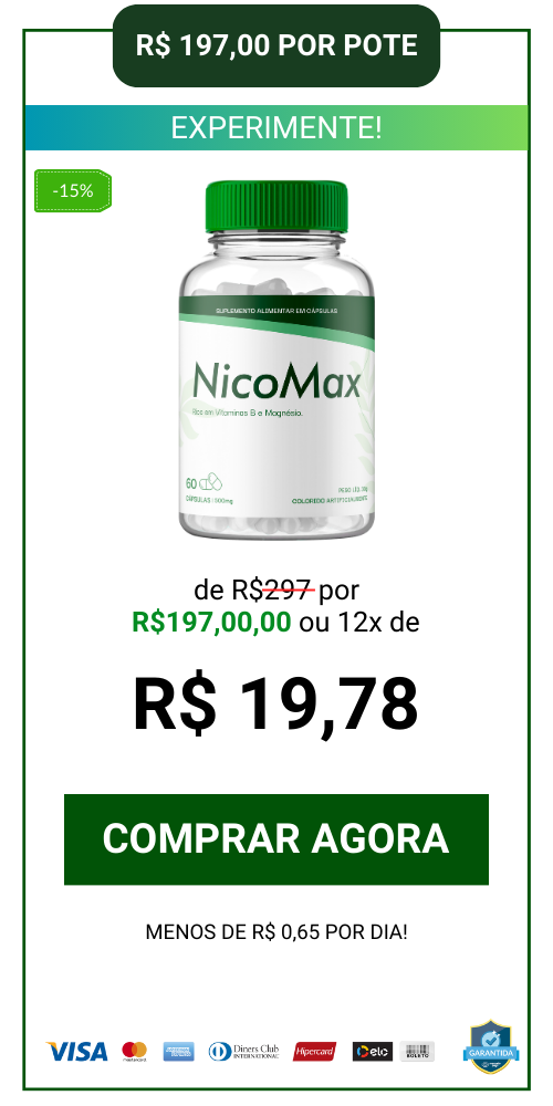 NicoMax possui uma fórmula completa com ingredientes naturais e vitaminas, seu processo de fabricação é único, produzido com nanotecnologia, ele irá agir de dentro para fora, eliminando o mau hábito de fumar.